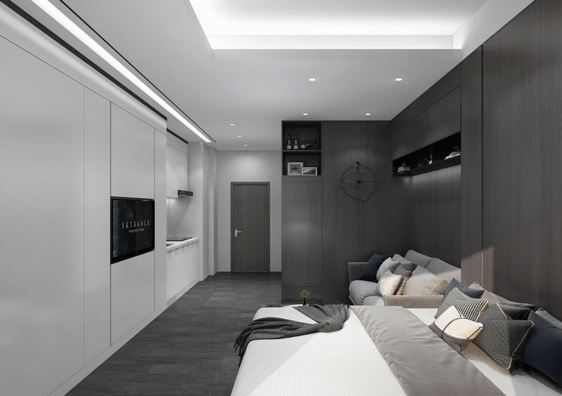 一个狭小的空间环境,为打拼人提供工作、生活双户型